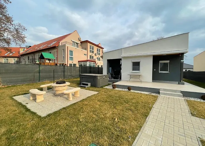 Sorrento Deluxe Apartment está situada a 350 metros de Sóstó y seduce a sus huéspedes con una piscina climatizada y un jacuzzi en los que relajarse. La villa ofrece acceso a una terraza y se encuentra a unos 25 minutos a pie de Galerius Spa.